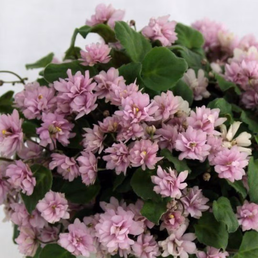 Saintpaulia ’Trail Along’, även kallad afrikansk viol, är en bedårande liten växt med sammetslena blad och vackra, mjukt färgade blommor som återkommer nästan å